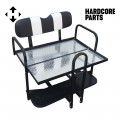 This EZGO: TXT – Convertible Rear Flip Seat Cargo Bed Kit is the ideal addition to any golf cart, converting your 2-passenger golf cart in to a 4-passenger golf cart. This seat kit includes the Flip Folding capability which allows the bottom seat cushion to flip over and converts the 4-passenger golf cart in to a very strong utility cargo bed.