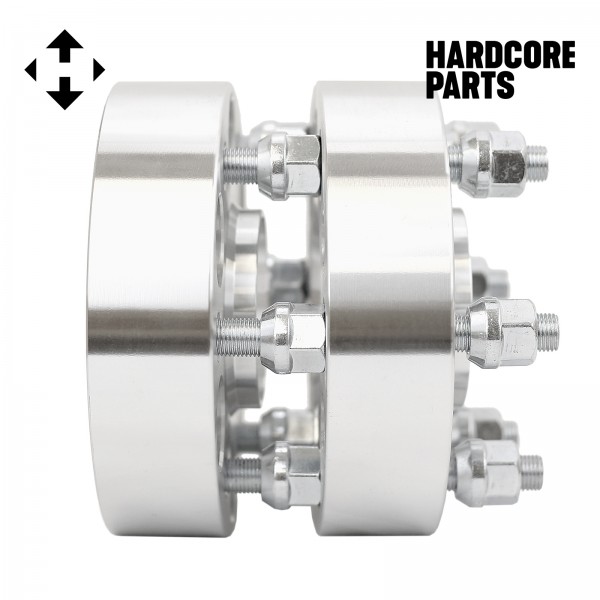 6x5 to 6x5 Silver Hubcentric Wheel Spacer Adapters, Center Bore 78.1mm, Thread M12-1.5, 1.5" thick spacer with lug nuts. Material Specs: Forged process, 7075-T6/6061-T6 Aluminum Alloy, 10.9 Grade Bolt/Stud and Heat-Treated 8 Grade Nuts with certification, 24 hours NSS Tested, Machining precision 0.01mm-0.06mm. Packaging: White box packed with 2 spacers separated by 1/2" thick styrofoam seperator.