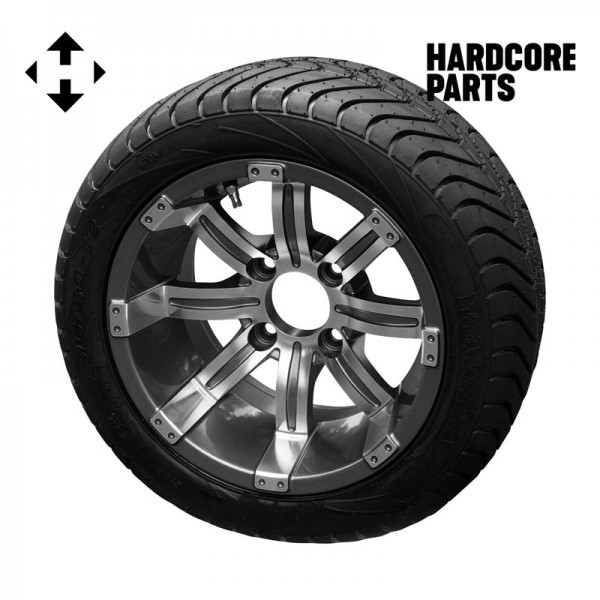 12" Machined/Gunmetal ‘Tempest’ Golf Cart Wheel and Tire Combo - Set of 4, includes 'SS' center caps and lug nuts