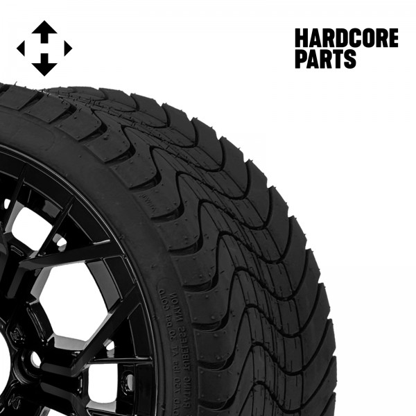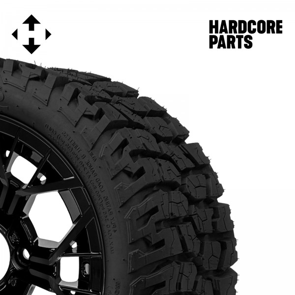 12" Black 'Mantis' Wheel and Tire Combo - Set of 4, includes 'SS' center caps and lug nuts