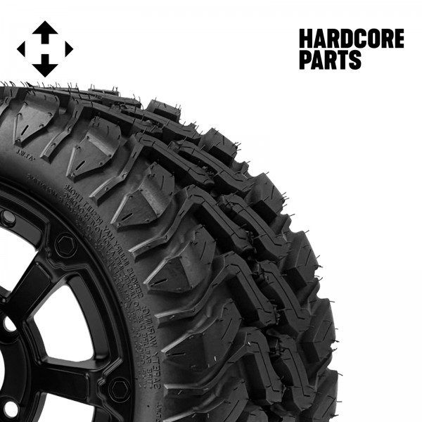 12" Matte Black 'Cyclops' Wheel and Tire Combo - Set of 4, includes 'SS' center caps and lug nuts