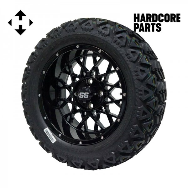 Club Car DS 6” Heavy Duty Double A-Arm Suspension Lift Kit with a full set of mounted wheels/tires, center caps, and lug nuts